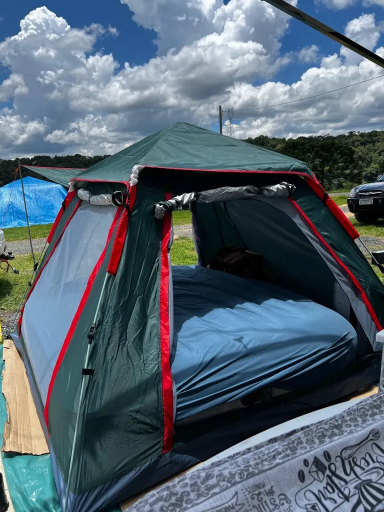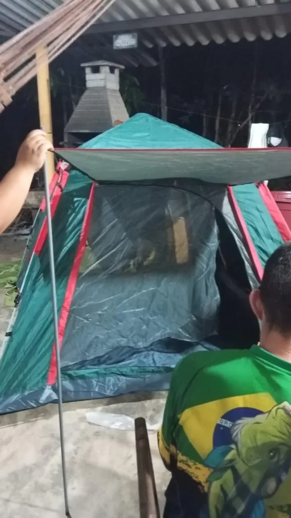“A barraca é boa, mas achei pesada para carregar em caminhadas longas. Para acampamentos de carro, é perfeita. A impermeabilidade é realmente boa.”